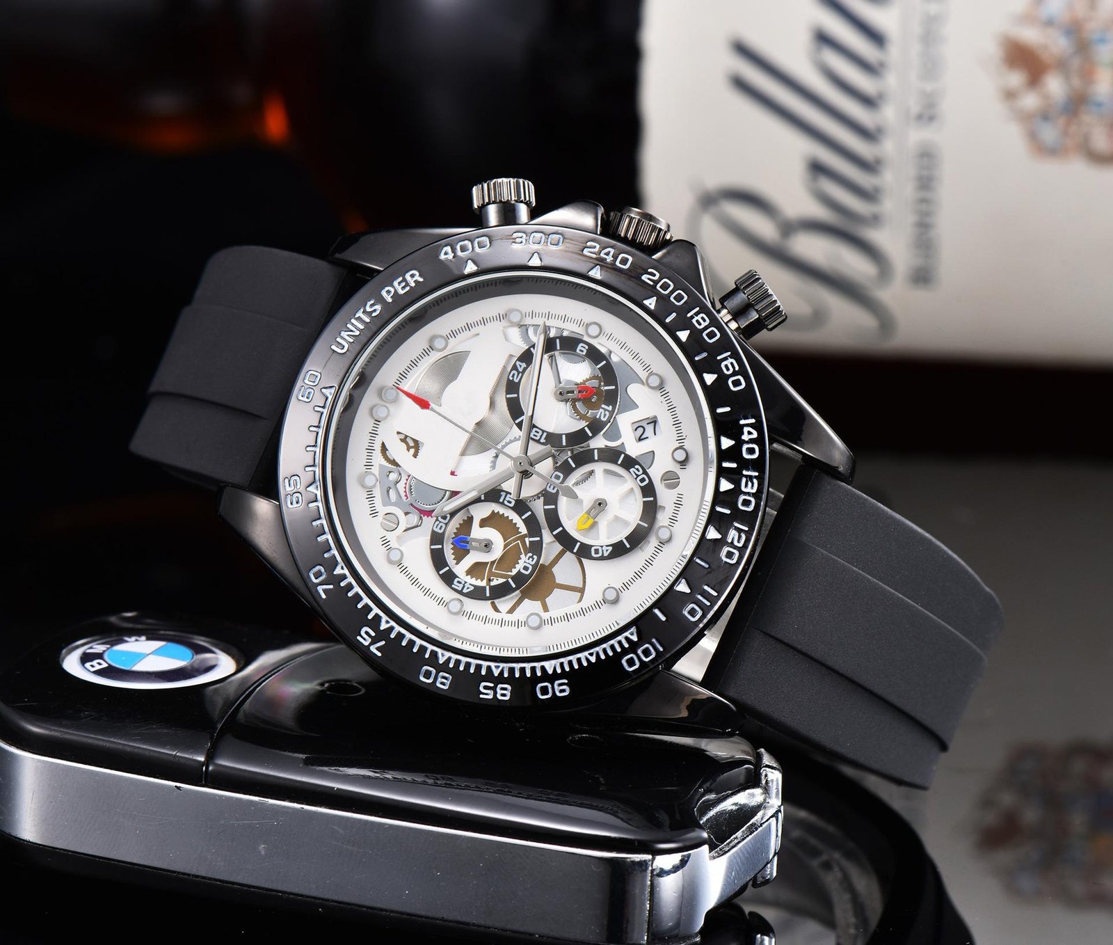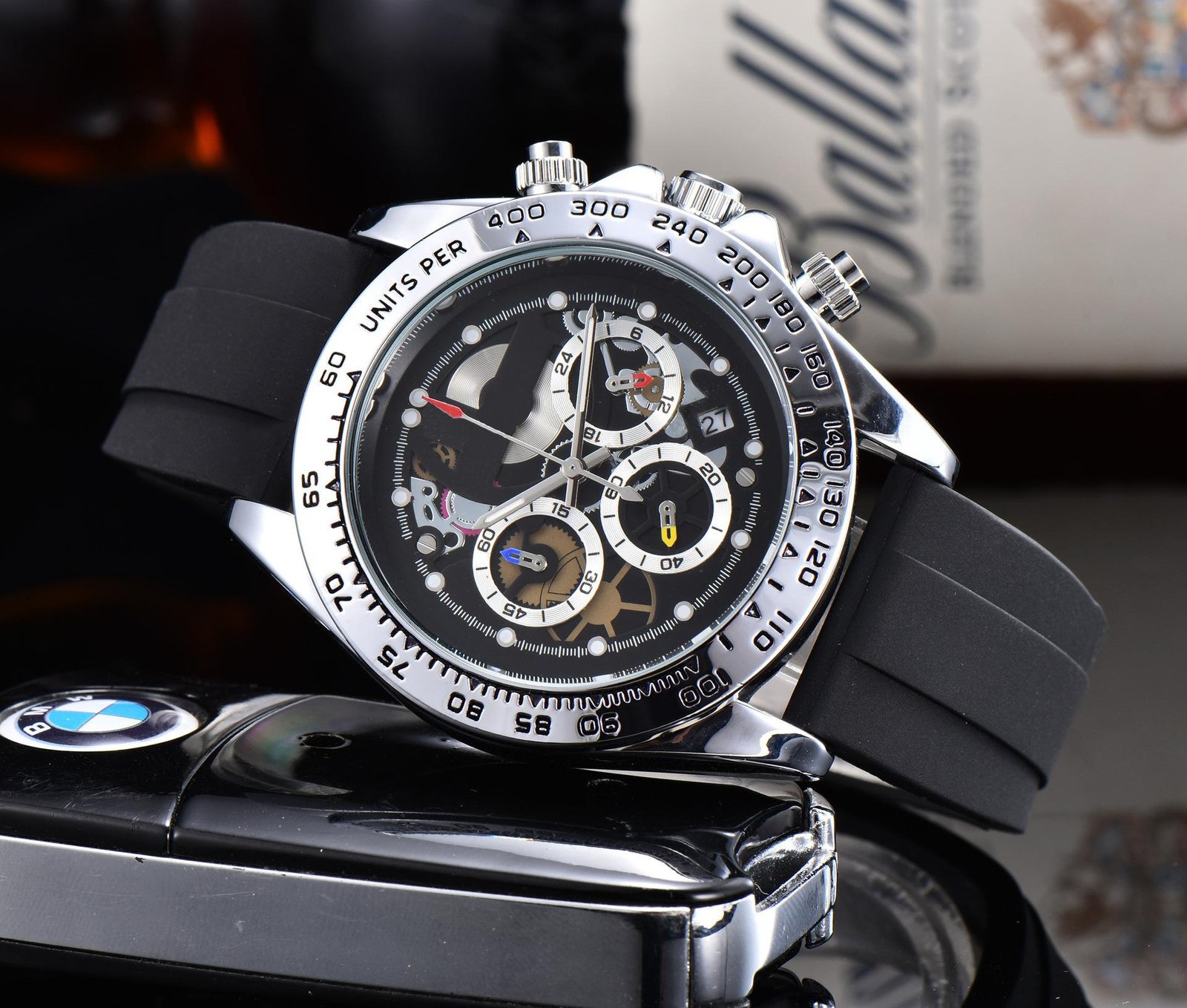 Special functions: calendar, small three hands, 24-hour indication