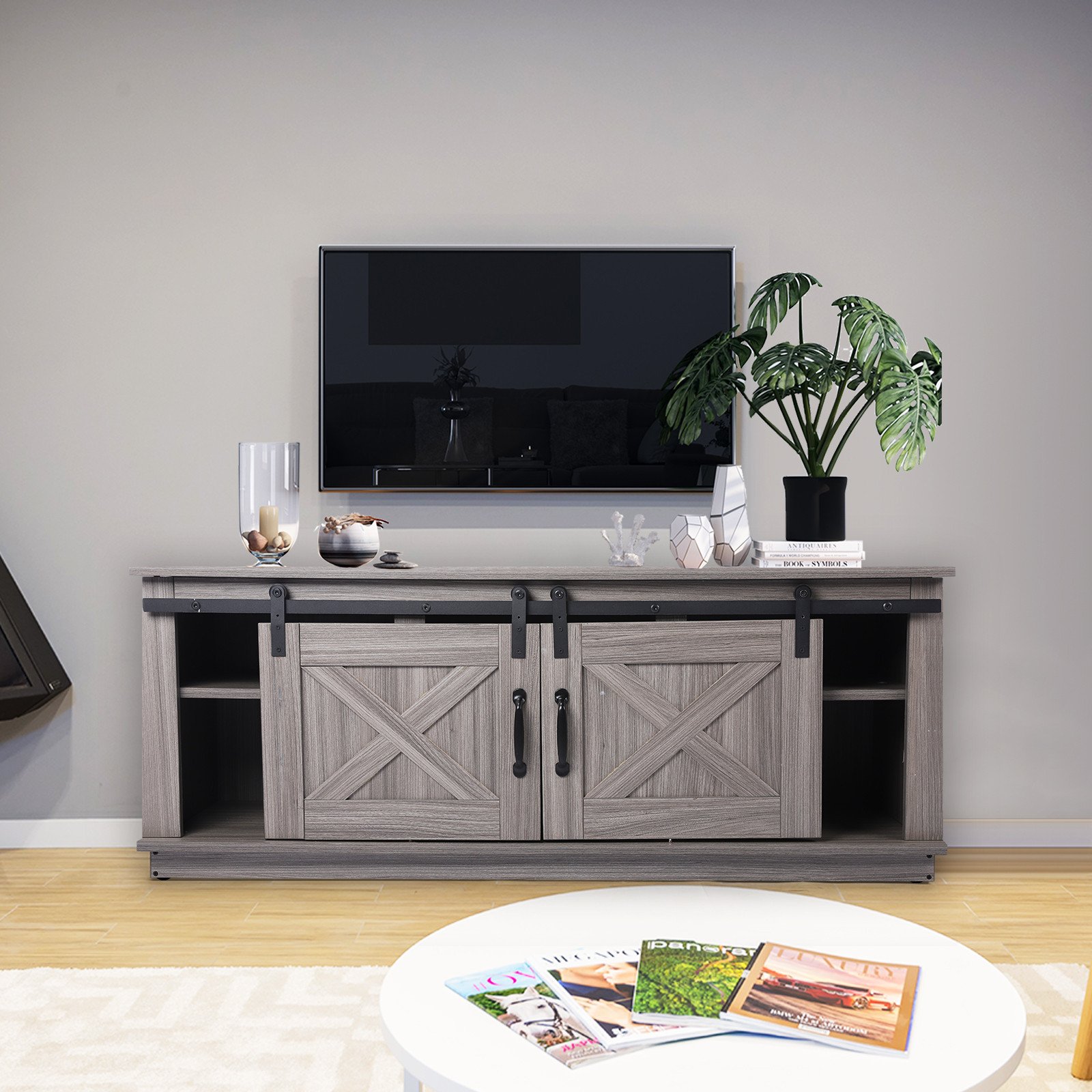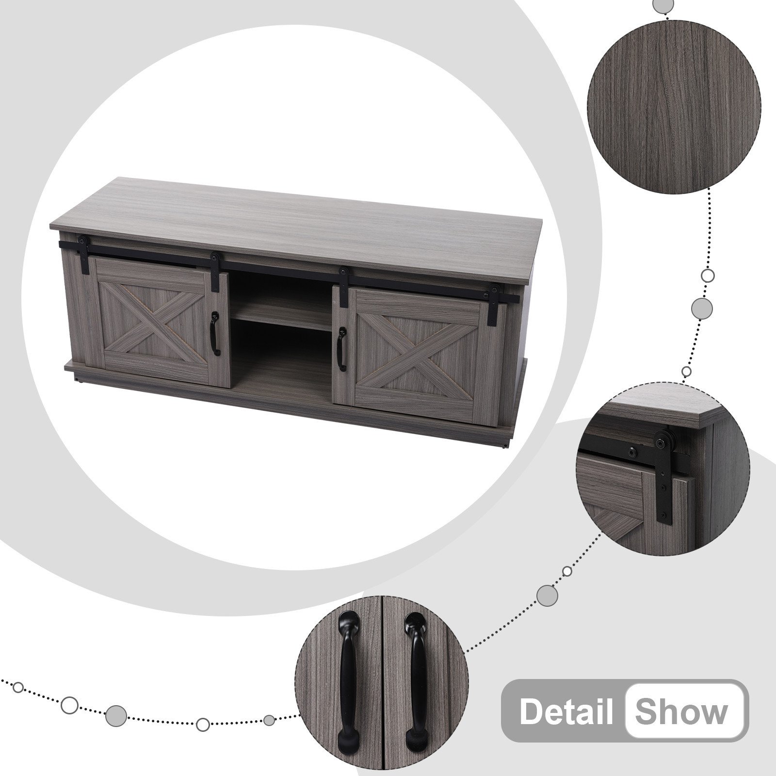 • 【Sliding Barn Doors】: A movable barn doors on the TV stand for